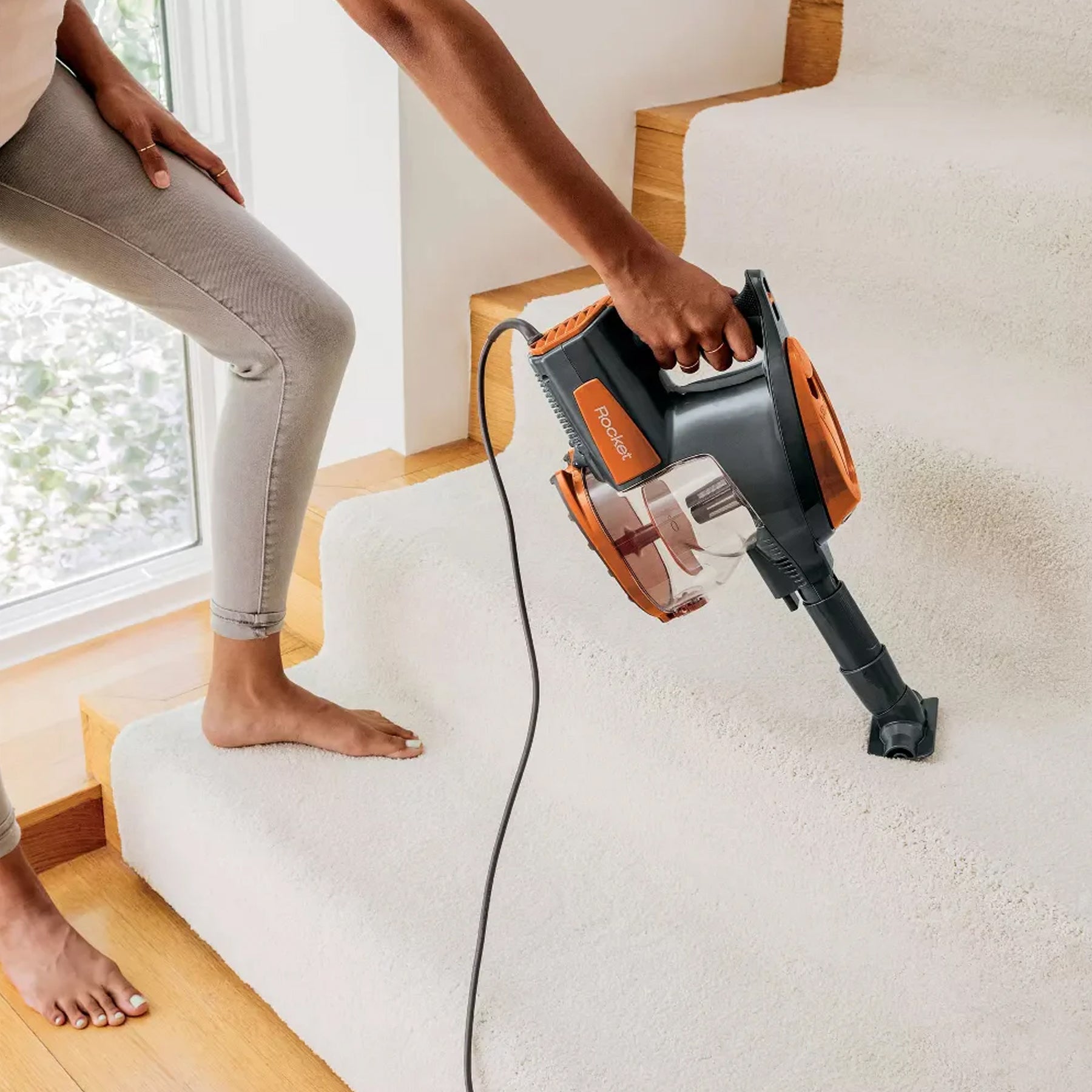 ¡Haz brillar cada rincón de tu casa con la Shark Rocket® HV301! Esta aspiradora con cable ultraligera ofrece una limpieza poderosa y constante, ideal para todo tipo de superficies: desde pisos duros y alfombras, hasta techos, cortinas y muebles. Su diseño ergonómico y versátil te permite transformarla en aspiradora de mano en segundos, perfecta para escaleras, autos o rincones difíciles de alcanzar.