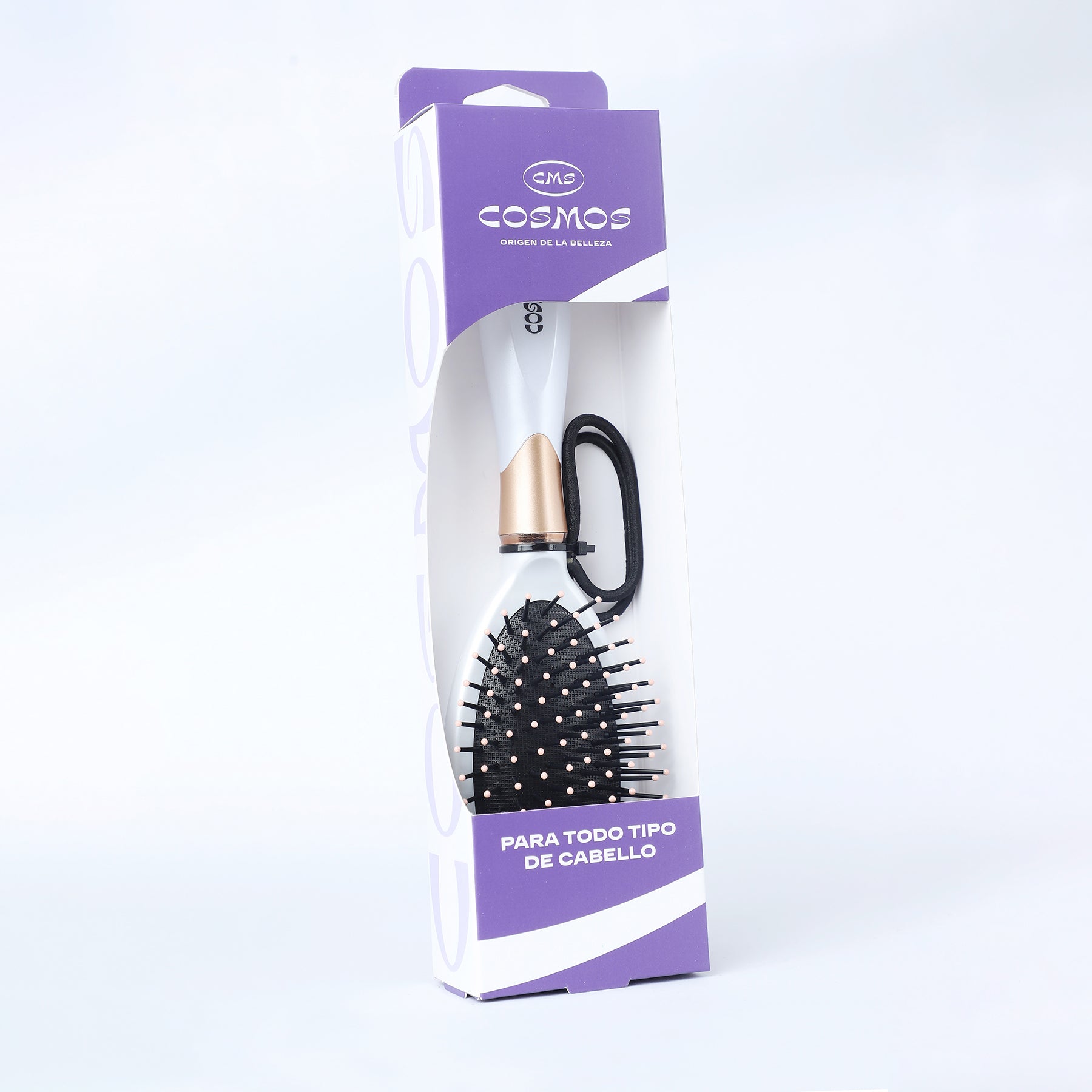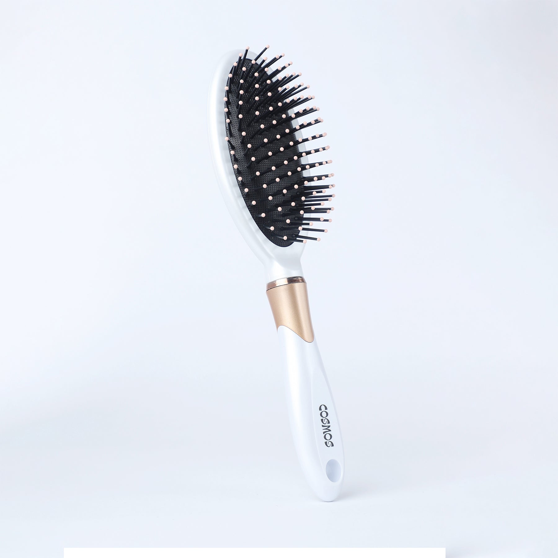 Este cepillo de cojín redondo Cosmos es perfecto para el cepillado diario. Sus cerdas con punta de bola evitan enganches y tirones, mientras desenredan y suavizan el pelo. Con este cepillo, disfrutarás de un cabello deslumbrante y sin enredos.