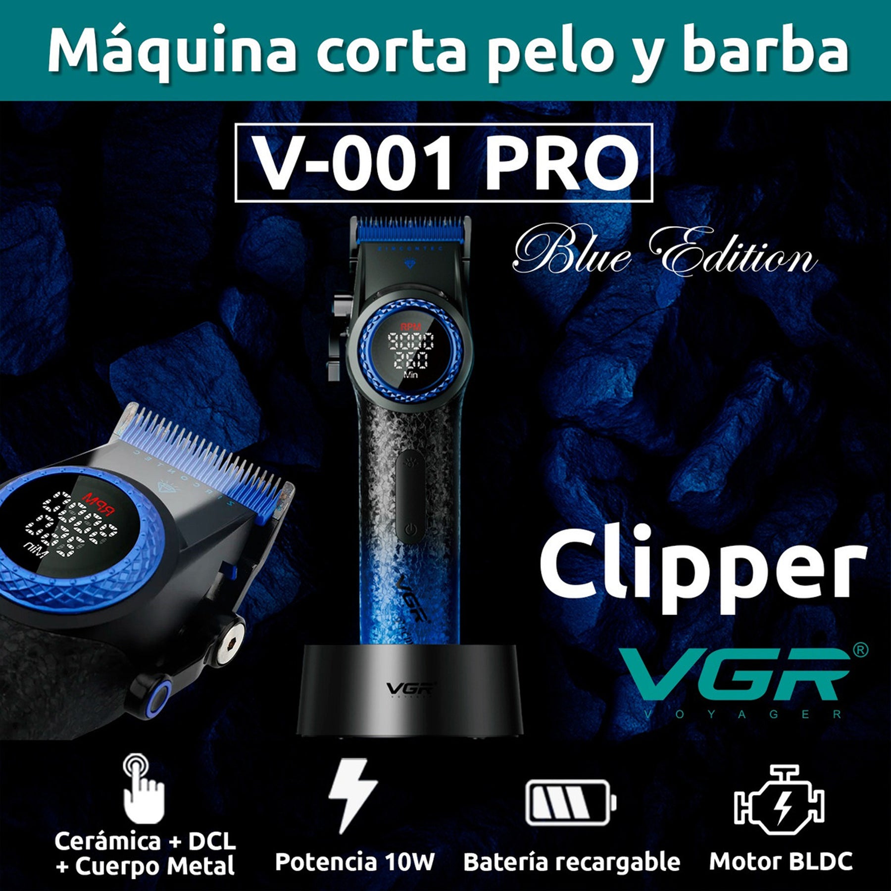 Su potente motor garantiza un corte suave, sin tirones ni interrupciones, incluso en cabellos densos o gruesos. Gracias a su pantalla digital, siempre tendrás el control del tiempo, la velocidad y el estado de carga. Además, su diseño ergonómico con acabado antideslizante ofrece comodidad total incluso en largas sesiones.