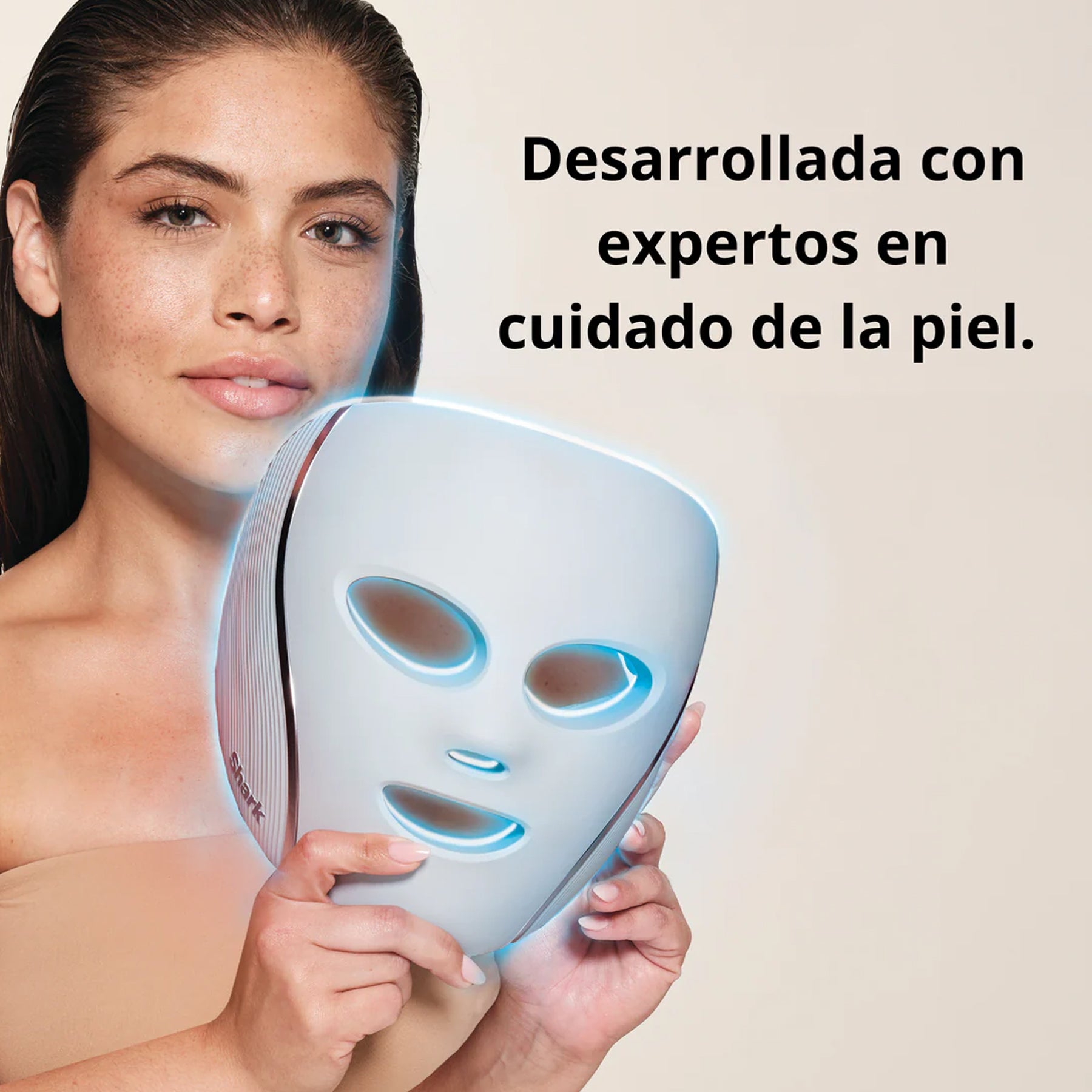 La máscara CryoGlow de Shark combina lo mejor de la ciencia estética con comodidad de uso en casa. Gracias a su tecnología iQLED de triple emisión (luz roja, azul e infrarroja), ofrece una cobertura completa que ayuda a mejorar el tono, la textura y la luminosidad de la piel tras un ciclo continuo de 8 semanas.